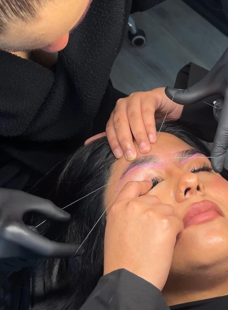 Esto es depilación pero con hilo, y te juro que es súper preciso. Podemos hacer la forma exacta que quieres y quitar hasta los pelitos más finitos que con pinza no se pueden. Es genial para definir b...