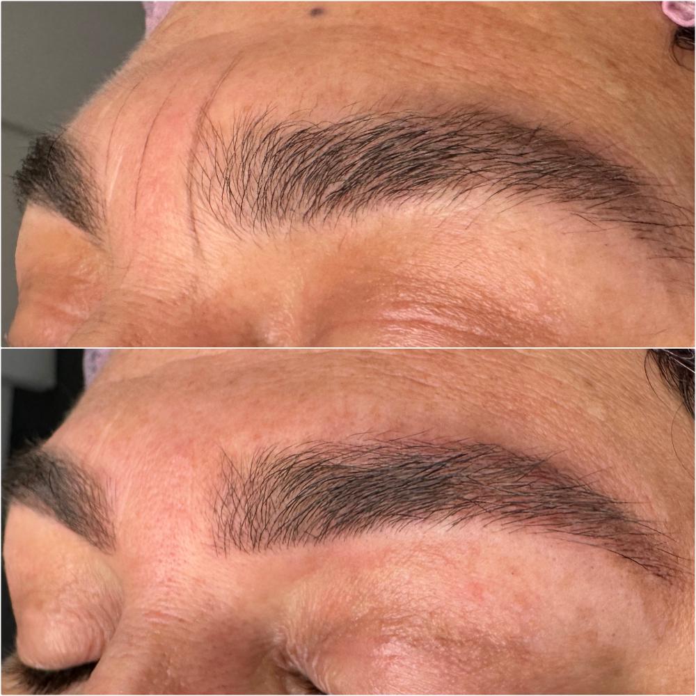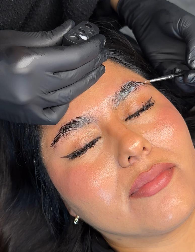 Aplicación de pigmentos en la capa superior de la piel (epidermis) para crear trazos finos que imitan la apariencia y siguen la dirección de los vellos naturales en las cejas.